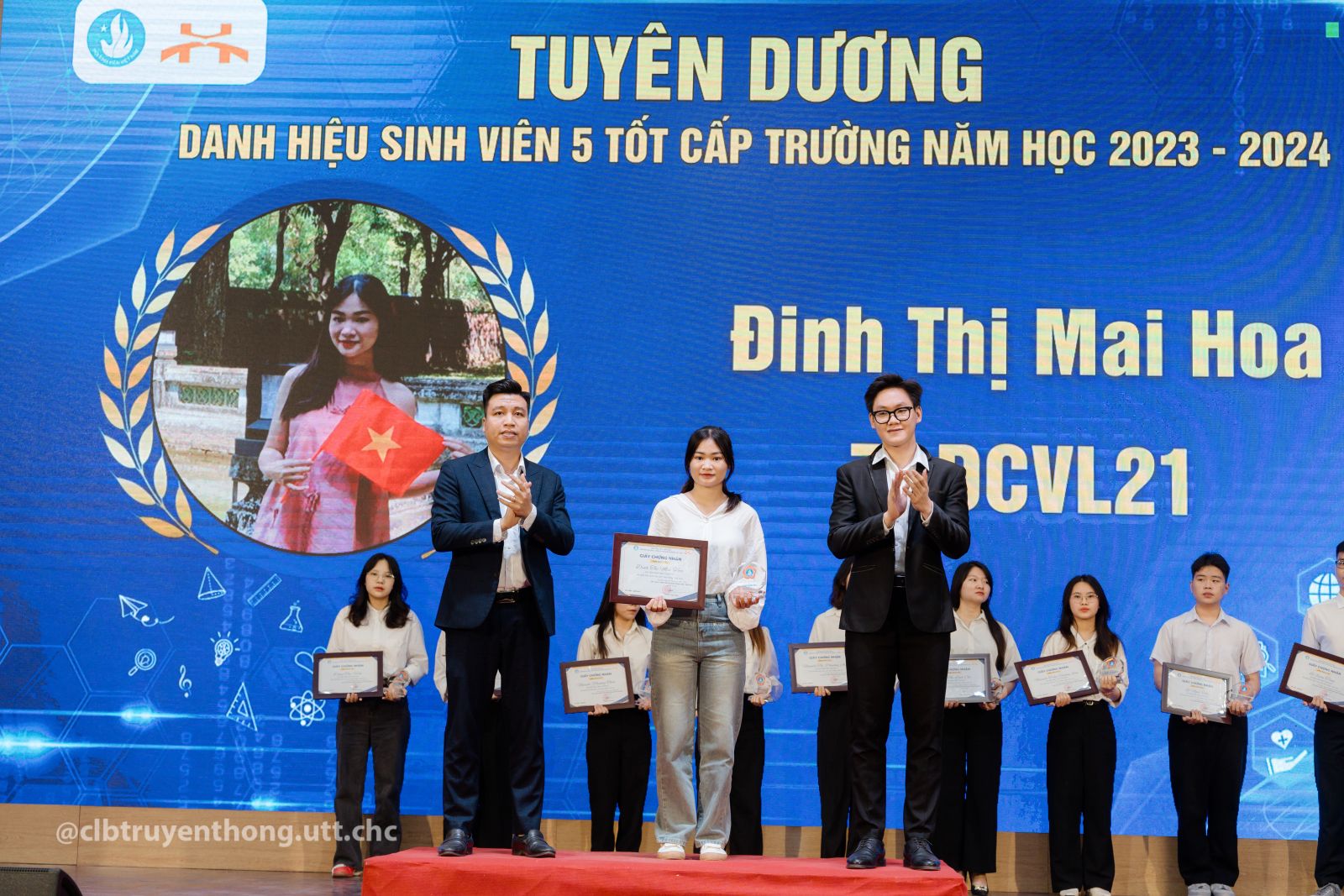 Trong khuôn khổ chương trình, đã diễn ra Lễ tuyên dương danh hiệu sinh viên 5 tốt cấp Trường năm học 2023-2024.