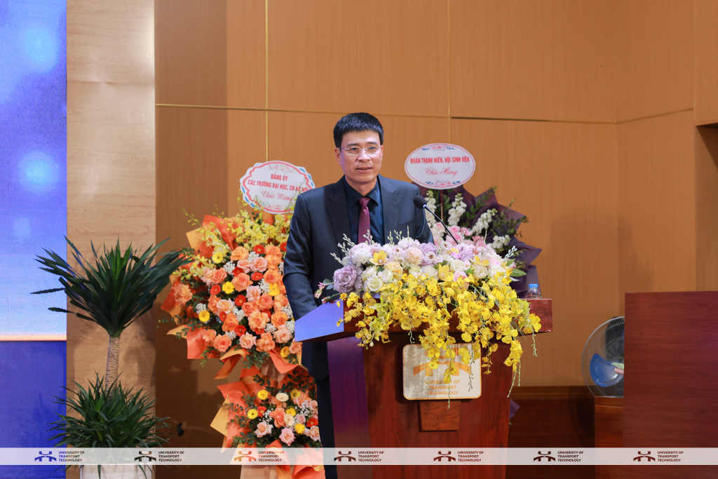 Phát biểu nhận nhiệm vụ, PGS.TS. Nguyễn Hoàng Long - Hiệu trưởng Nhà trường bày tỏ niềm vinh dự và trách nhiệm khi được tin tưởng giao trọng trách; đồng thời khẳng định sẽ cùng tập thể Đảng ủy, Ban Giám hiệu phát huy truyền thống đoàn kết, đổi mới quản trị theo hướng tự chủ, đẩy mạnh chuyển đổi số, tập trung đào tạo nguồn nhân lực chất lượng cao cho các lĩnh vực trọng điểm, xây dựng Trường Đại học Công nghệ GTVT phát triển bền vững.