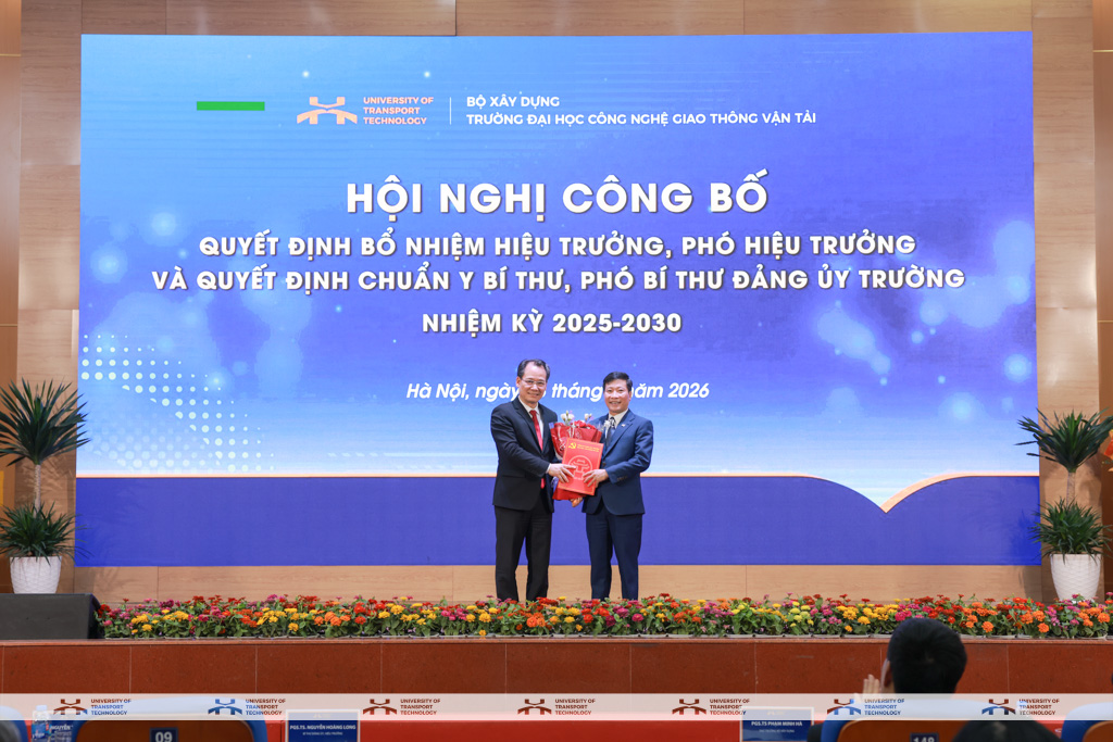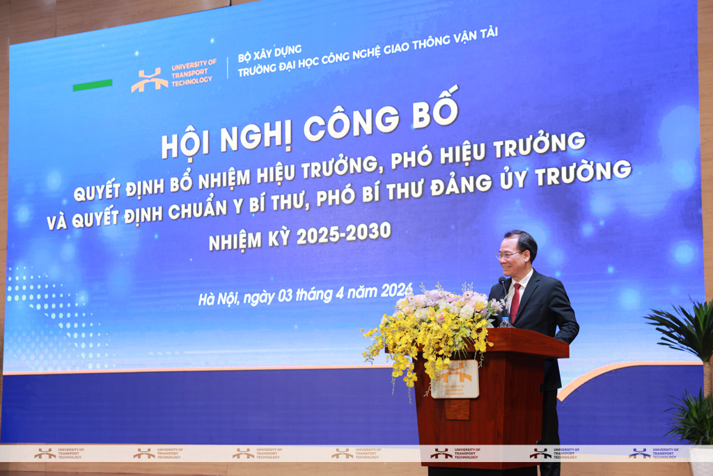 Chiều ngày 03/4/2026, Trường Đại học Công nghệ GTVT long trọng tổ chức Hội nghị công bố Quyết định bổ nhiệm Hiệu trưởng, Phó Hiệu trưởng và chuẩn y chức danh Bí thư, Phó Bí thư Đảng ủy Trường nhiệm kỳ 2025-2030.