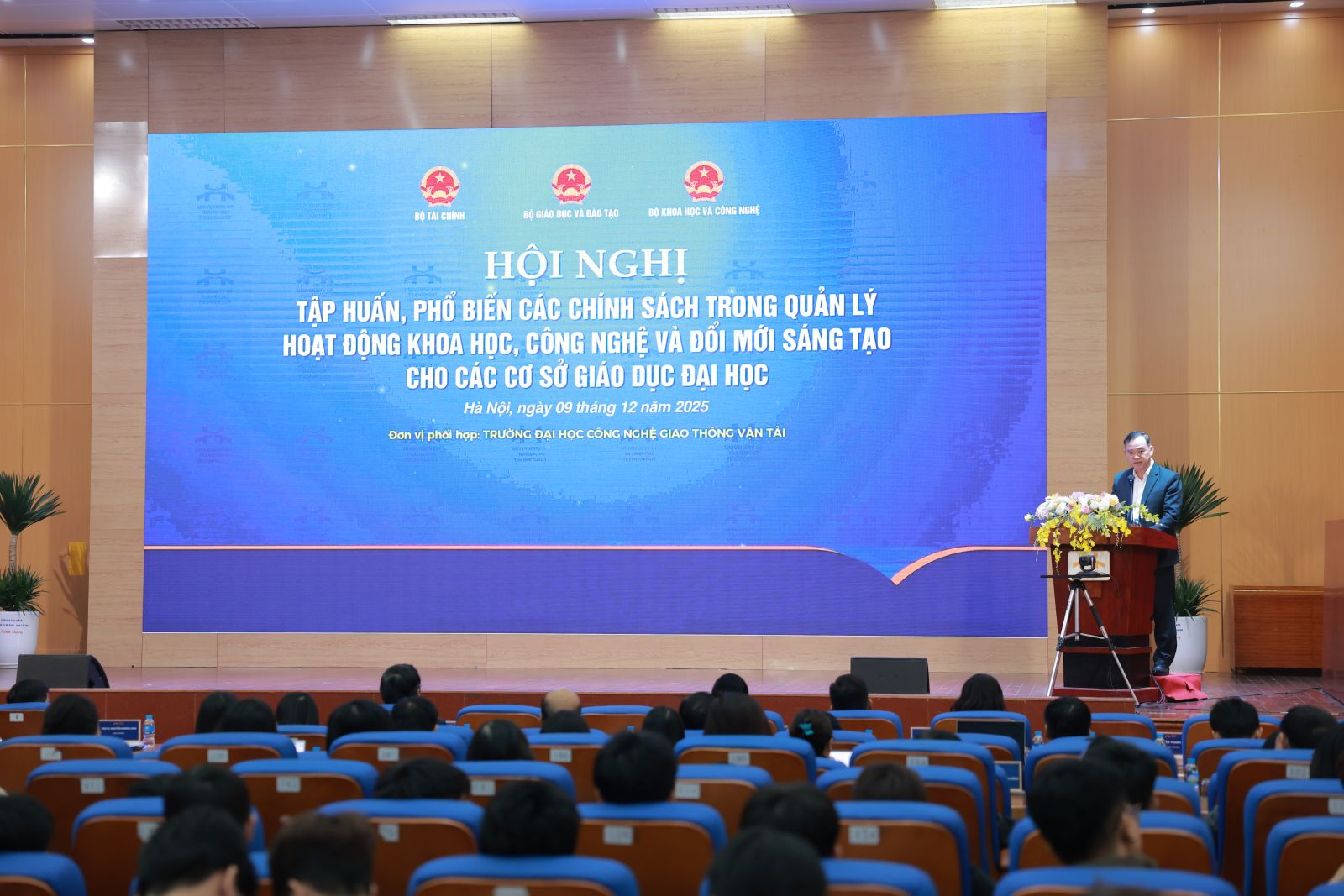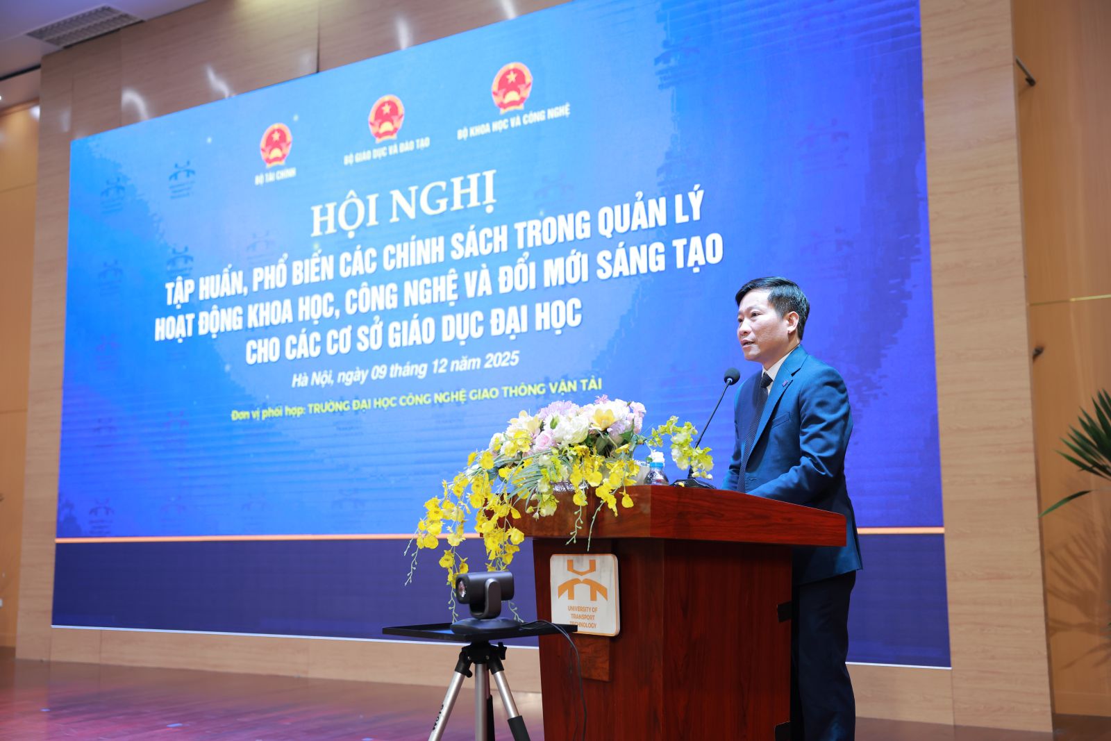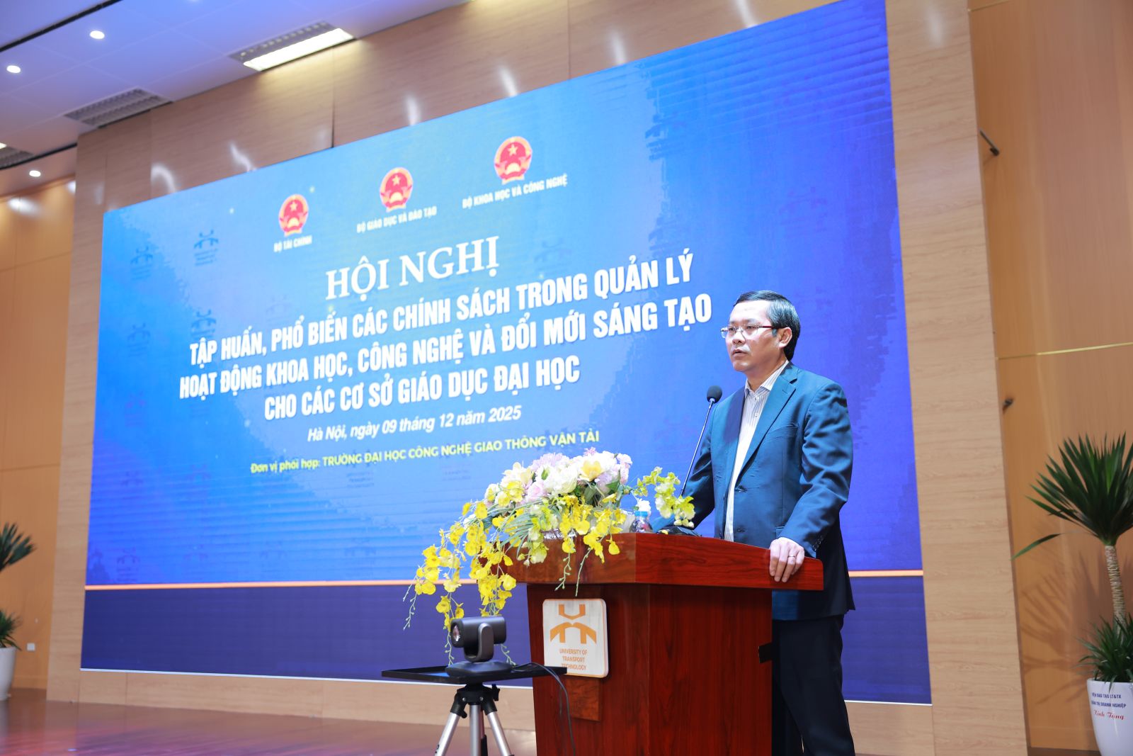 Sáng ngày 9/12, tại Trường Đại học Công nghệ GTVT (UTT) đã diễn ra Hội nghị tập huấn, phổ biến các chính sách, quy định về quản lý khoa học, công nghệ và đổi mới sáng tạo. Hội nghị do Bộ Giáo dục và Đào tạo, Bộ Tài chính, Bộ Khoa học và Công nghệ phối hợp tổ chức thực hiện. Thứ trưởng Bộ Giáo dục và Đào tạo Nguyễn Văn Phúc chủ trì Hội nghị.