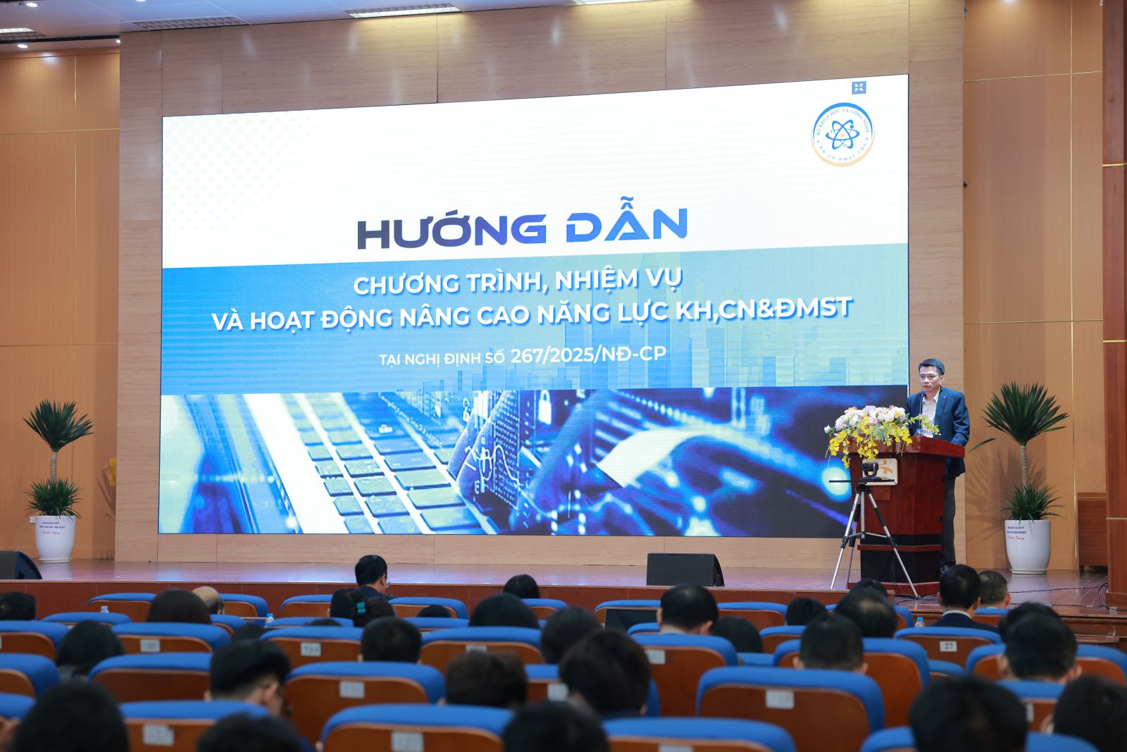 Bên cạnh đó, đại diện Bộ Khoa học và Công nghệ cũng đã trình bày các nội dung trọng tâm của những văn bản pháp lý mới như Nghị định 267/2025/NĐ-CP, 268/2025/NĐ-CP, 263/2025/NĐ-CP, cùng các chính sách khuyến khích đổi mới sáng tạo, công nhận trung tâm đổi mới sáng tạo, doanh nghiệp khởi nghiệp sáng tạo và cơ chế phát triển hệ sinh thái đổi mới sáng tạo.