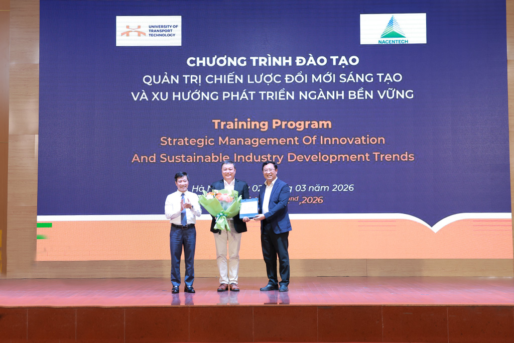 Ngày 02/3/2026, Trường Đại học Công nghệ GTVT (UTT) đã phối hợp với Viện Đổi mới sáng tạo Quốc gia (NACENTECH), Bộ Khoa học và Công nghệ tổ chức chương trình đào tạo với chủ đề “Quản trị chiến lược Đổi mới sáng tạo và Xu hướng phát triển ngành bền vững” nhằm nâng cao năng lực hoạch định và triển khai đổi mới sáng tạo trong giai đoạn phát triển mới cho đội ngũ cán bộ, giảng viên.