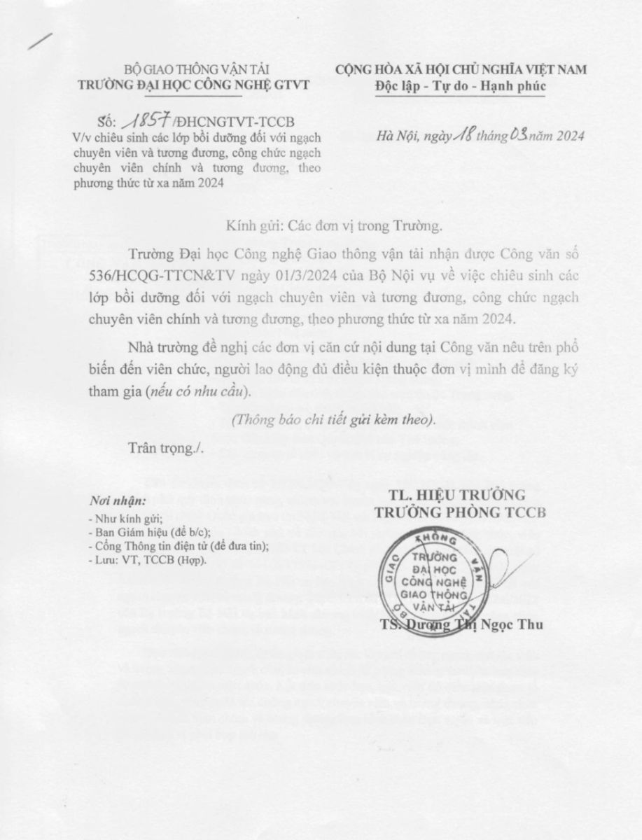 Chiêu sinh các lớp bồi dưỡng đối với ngạch chuyên viên và tương đương, công chức ngạch chuyên viên chính và tương đương theo phương thức từ xa năm 2024 20/03/2024 16:03 File đính kèm QD-SO-1857-NGAY-18.03.2024-VV-CHIEU-SINH-LOP-BOI-DUONG-DOI-VOI-NGACH-CHUYEN-VIEN-2024.pdf