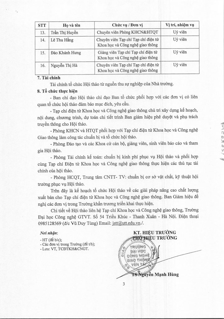 Kế hoạch Tổ chức Hội thảo về Nâng cao chất lượng xuất bản Tạp chí điện tử Khoa học và Công nghệ giao thông 20/12/2023 11:12 File đính kèm 8627-KH---HCNGTVT.pdf