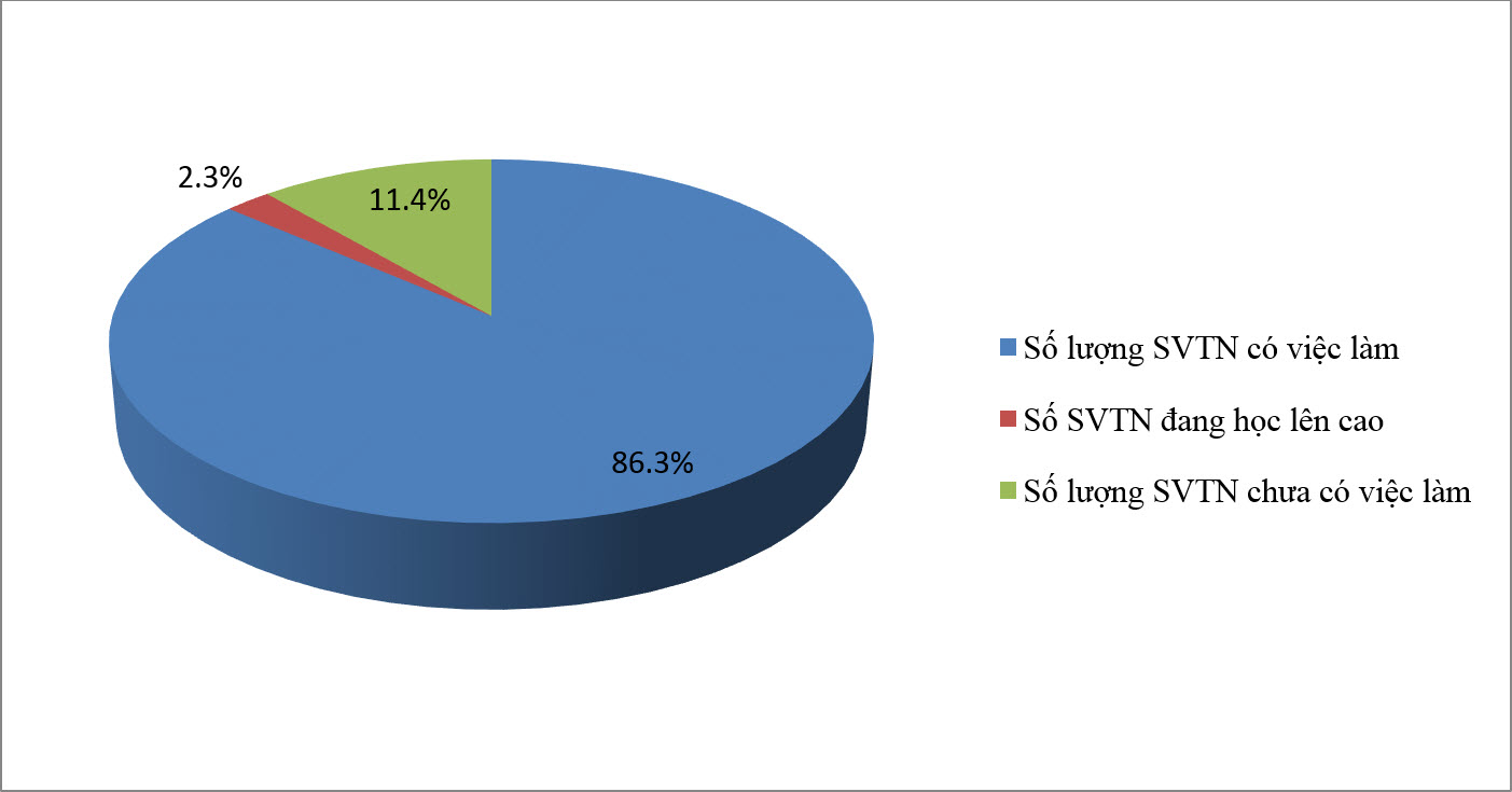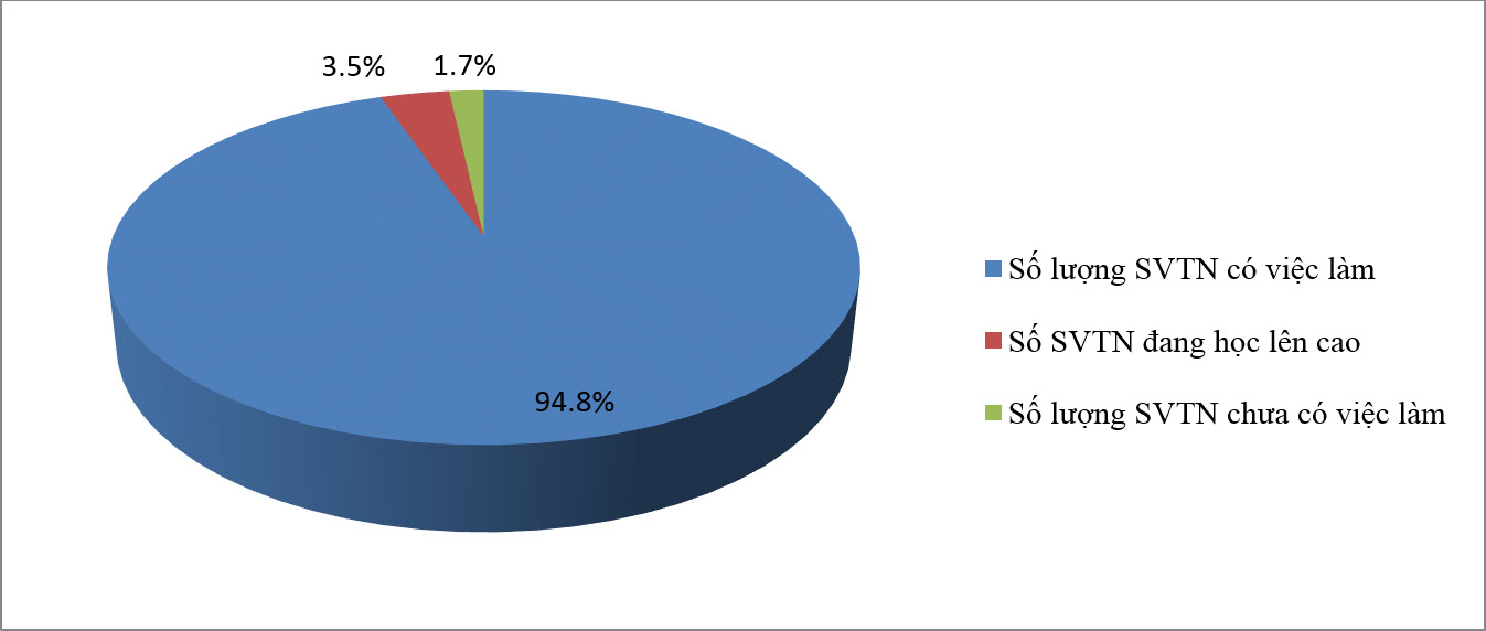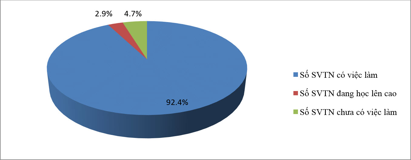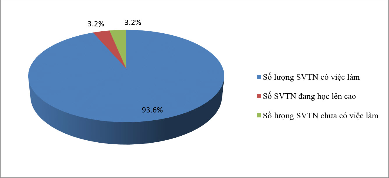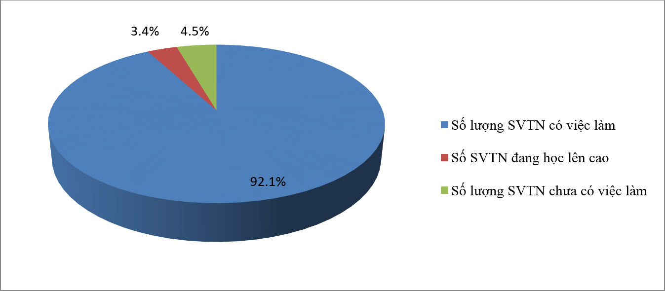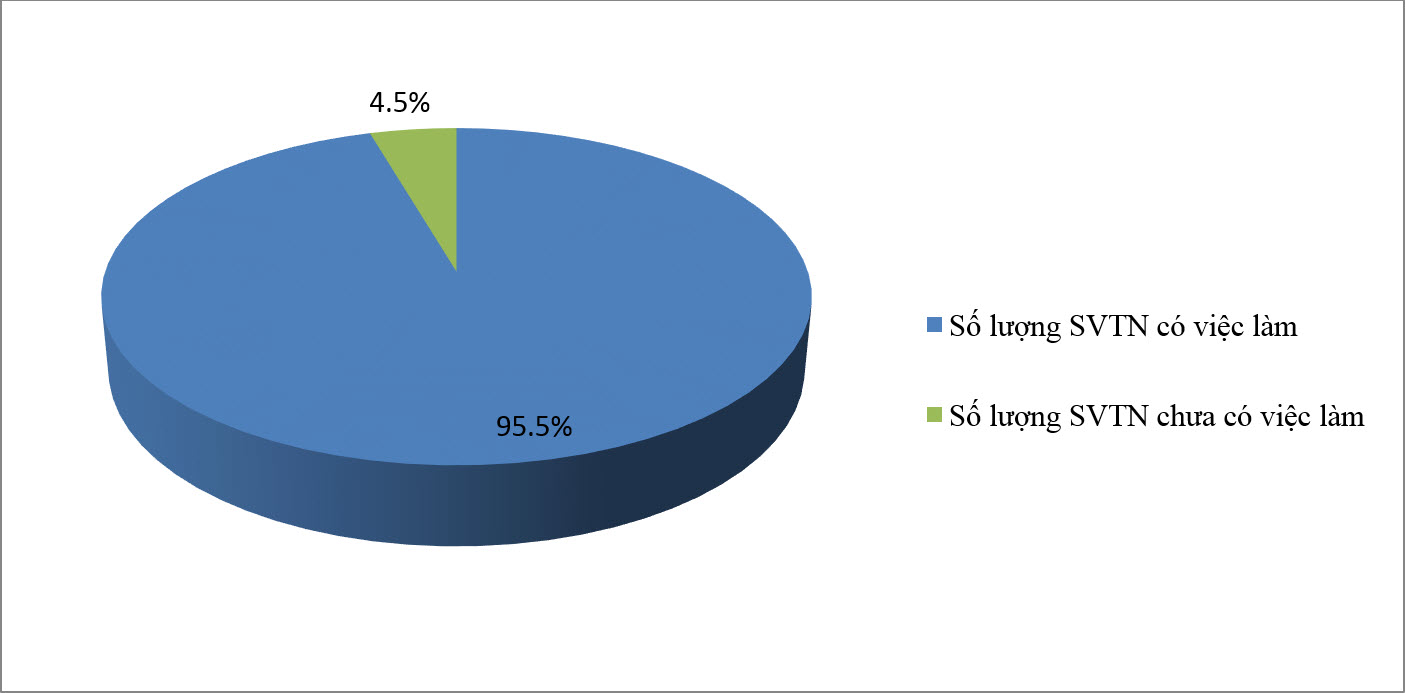 Trong Bảng số liệu trên tỷ lệ SVTN có việc làm là 95.5%; 4.5% sinh viên TN chưa có việc làm.