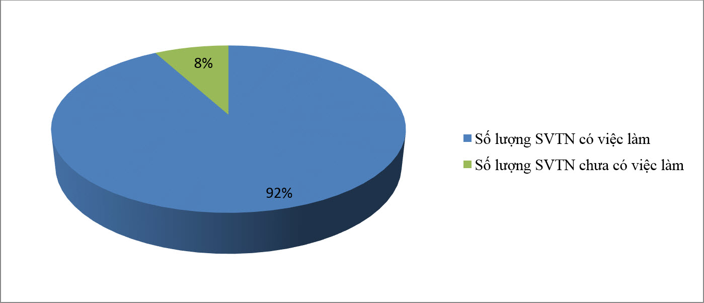 Trong Bảng số liệu trên có 92% có thông tin phản hồi đã có việc làm; 8% sinh viên TN chưa có việc làm.