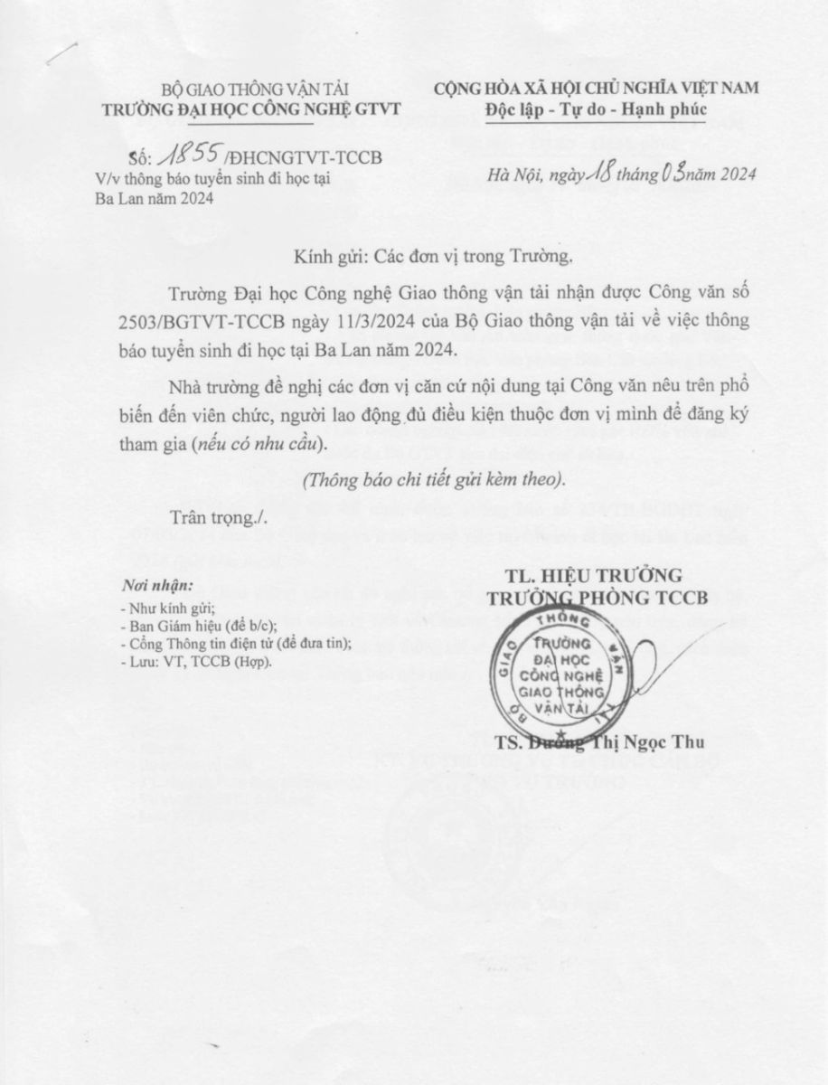 Thông báo tuyển sinh đi học tại Ba Lan năm 2024 20/03/2024 15:03 File đính kèm QD-SO-1855-NGAY-18.03.2024-VV-THONG-BAO-TUYEN-SINH-DI-HOC-TAI-BA-LAN-NAM-2024.pdf