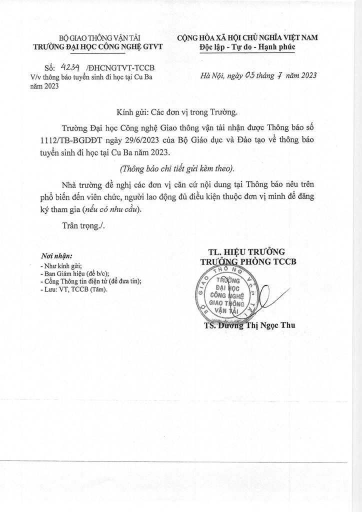 Thông báo tuyển sinh đi học tại Cu Ba năm 2023