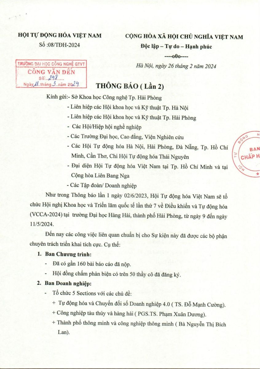 Thông tin tổ chức Hội nghị Khoa học và Triển lãm quốc tế lần thứ 7 về Điều khiển và Tự động hoá tại trường ĐH Hàng Hải 13/03/2024 08:03
