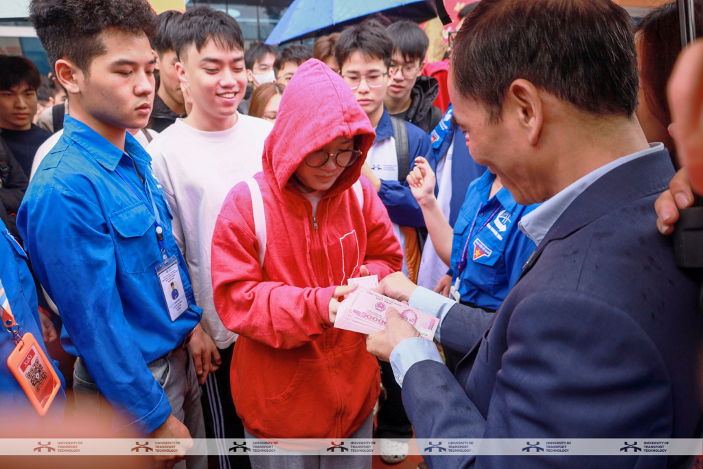 Điểm nhấn đặc biệt của chương trình chính là hoạt động lì xì đầu xuân từ Ban Giám hiệu dành cho sinh viên. Những phong bao đỏ trao tận tay các bạn sinh viên tiêu biểu không đơn thuần mang ý nghĩa may mắn đầu năm, mà còn chứa đựng sự quan tâm, ghi nhận và niềm tin mà Nhà trường gửi gắm tới thế hệ trẻ UTT. Khoảnh khắc Ban Giám hiệu trực tiếp gửi lời chúc, bắt tay và trao lì xì đã tạo nên bầu không khí gần gũi, ấm áp; nụ cười rạng rỡ của sinh viên như thể hiện sự kết nối bền chặt giữa lãnh đạo Nhà trường và người học. Đây không chỉ là nét đẹp văn hóa đầu xuân mà còn là nguồn động viên tinh thần, tiếp thêm động lực để sinh viên bước vào năm học mới với quyết tâm cao hơn, mục tiêu rõ ràng hơn.