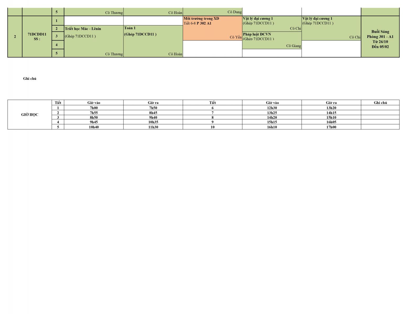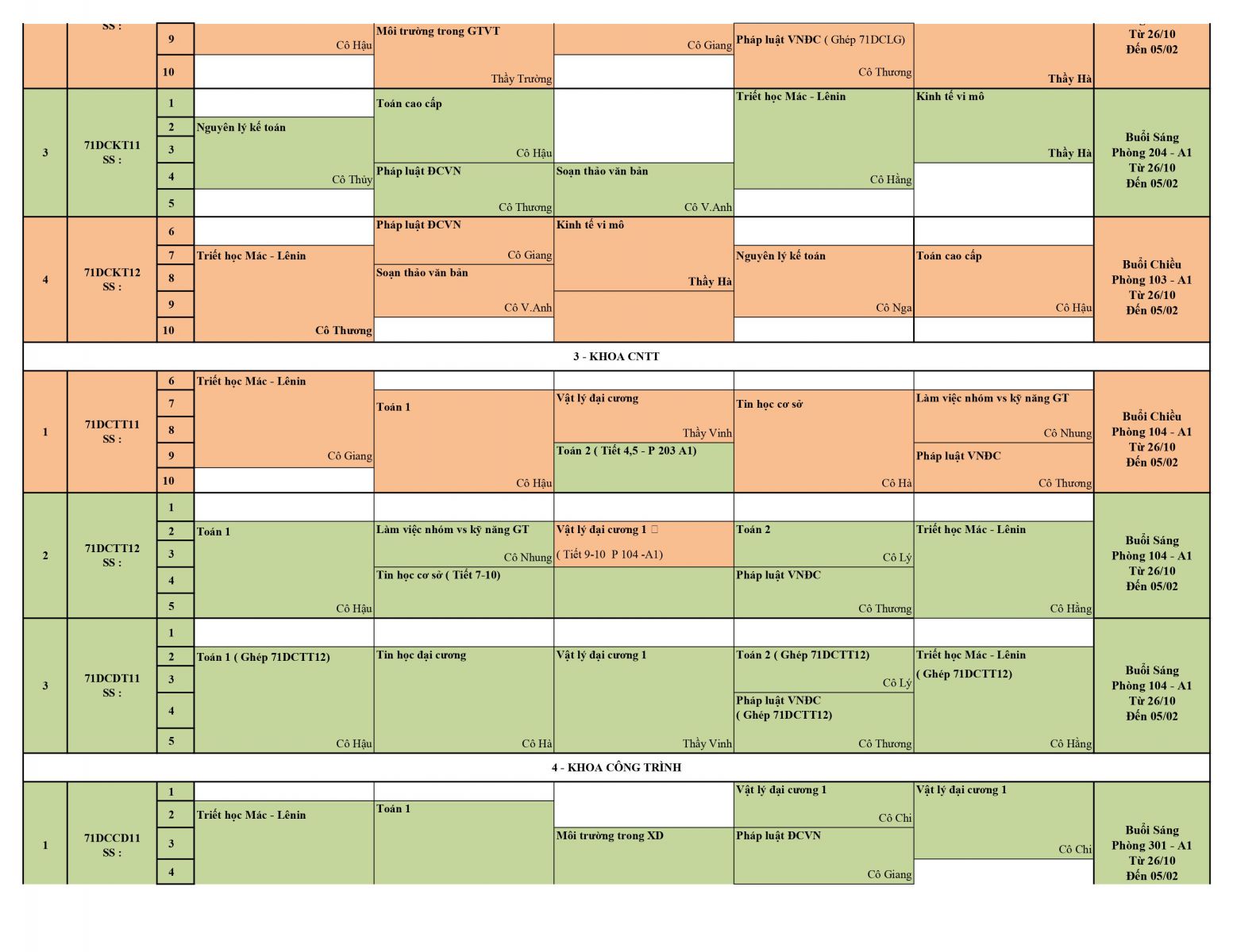 KHÓA 71 -TKB học tập kỳ I năm học 2020 - 2021