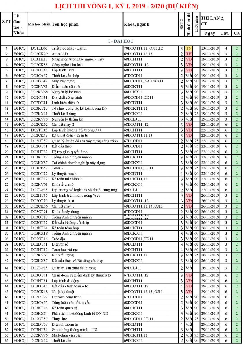 LỊCH THI VÒNG 1, KỲ 1_2019_2020 (DỰ KIẾN)