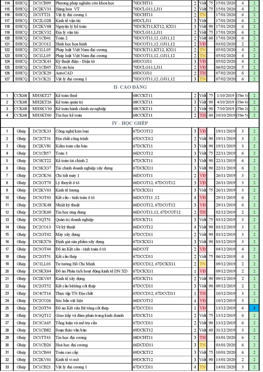Lịch thi KTHP Kỳ 2_2024_2025 (Nấc 1)