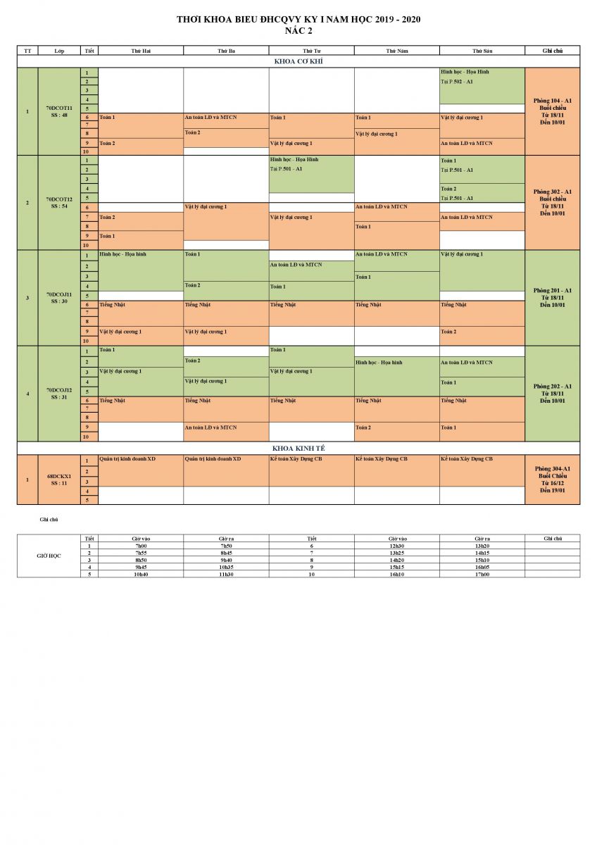 THỜI KHÓA BIỂU KỲ I NẤC 2 NĂM HỌC 2019 - 2020