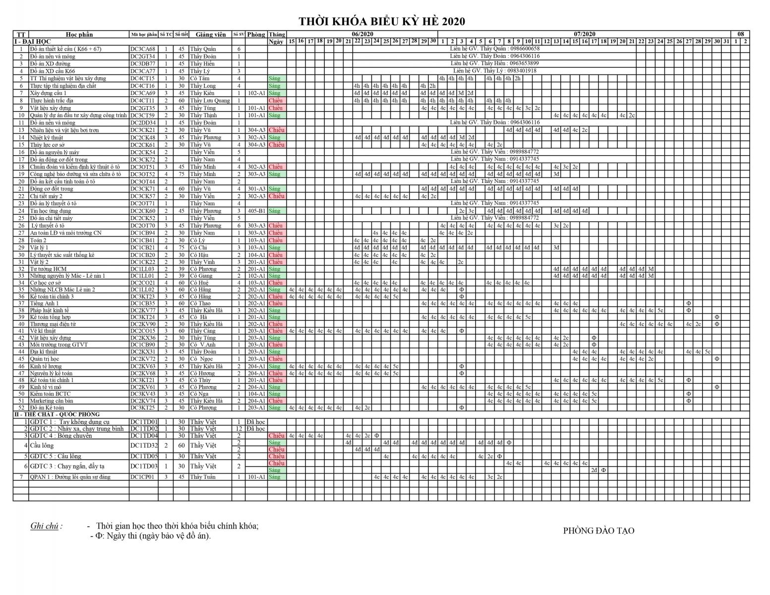Thời khóa biểu kỳ phụ hè 2020 - Dành cho các sinh viên ra trường