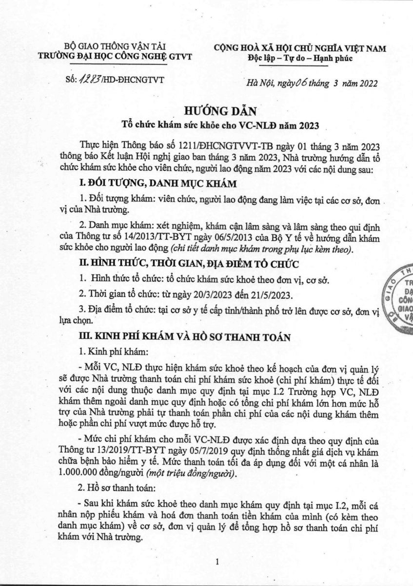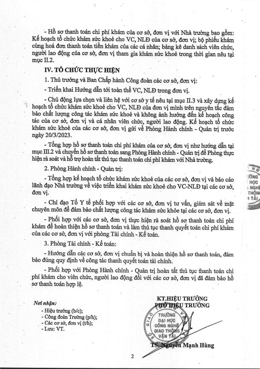 Kế hoạch tổ chức khám sức khỏe cho VC-NLĐ năm 2023