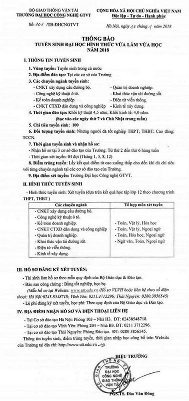 Thông báo về việc thay đổi Bộ chủ quản Trường Đại học Công nghệ GTVT