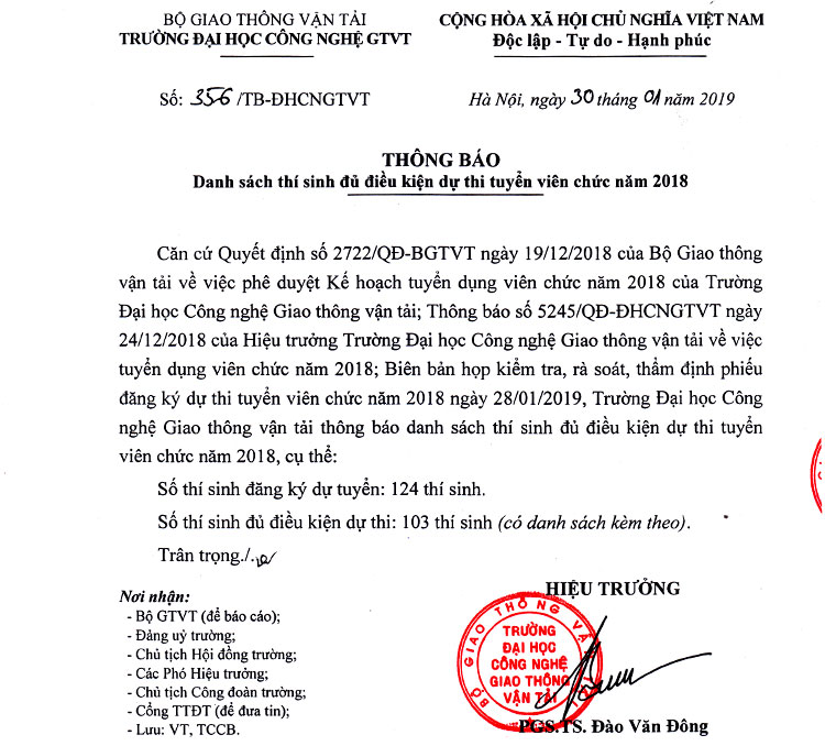 Thông báo Danh sách thí sinh đủ điều kiện dự thi tuyển viên chức năm 2018