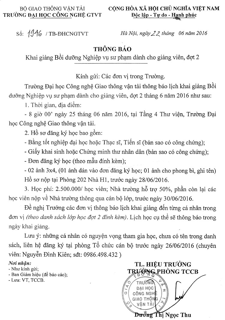 Thông báo Khai giảng Bồi dưỡng nghiệp vụ sư phạm dành cho giảng viên, đợt 2