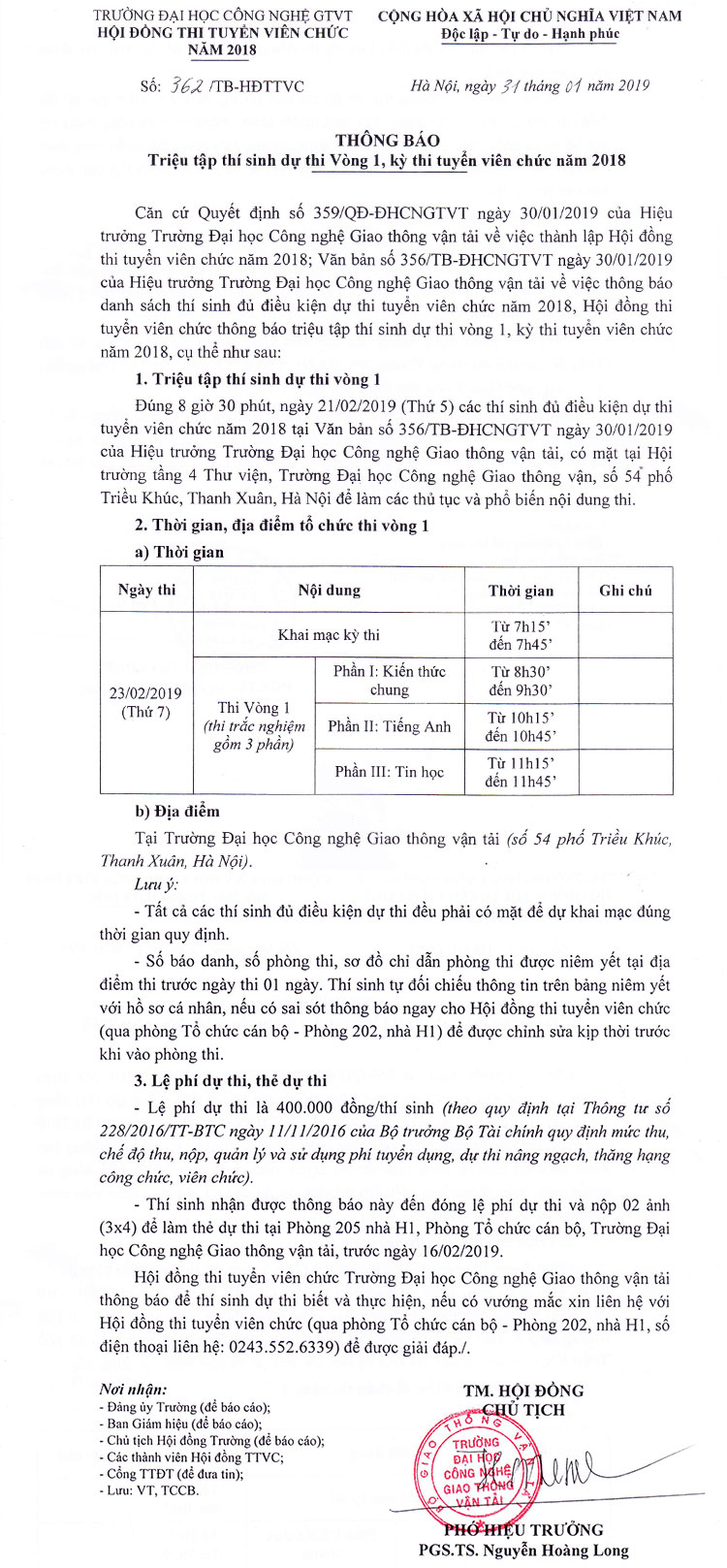 Thông báo Triệu tập thí sinh dự thi Vòng 1, kỳ thi tuyển viên chức năm 2018