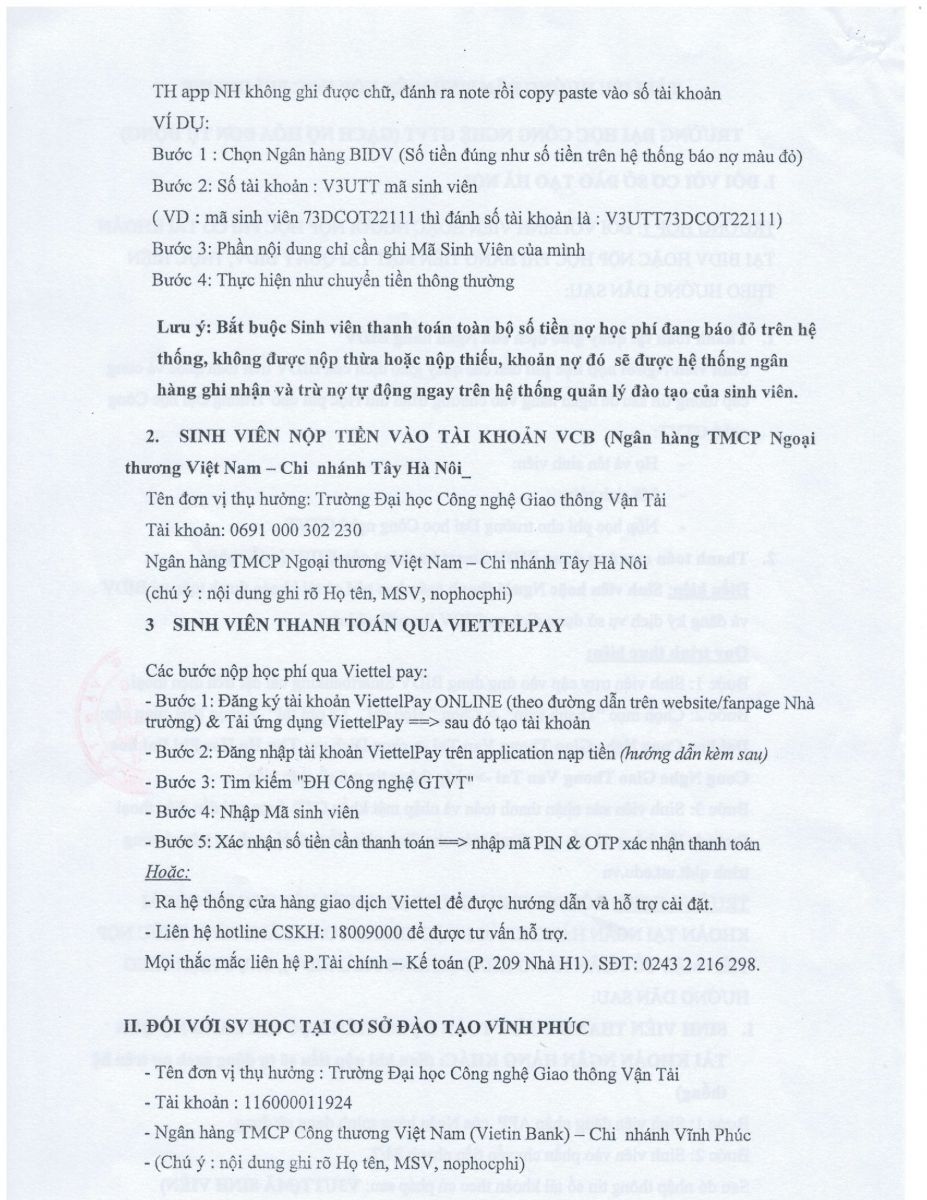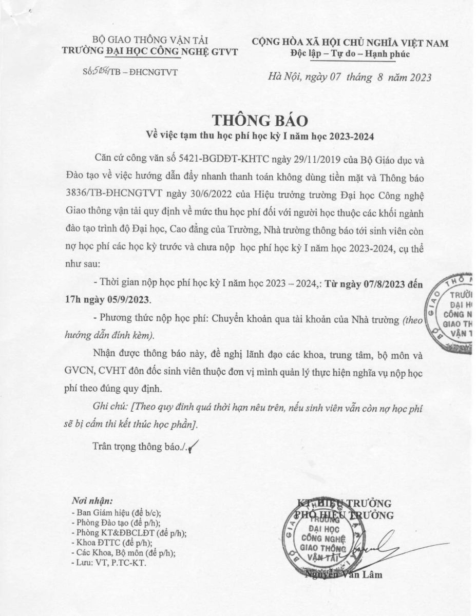 Thông báo về việc tạm thu học phí học kỳ I năm học 2023-2024