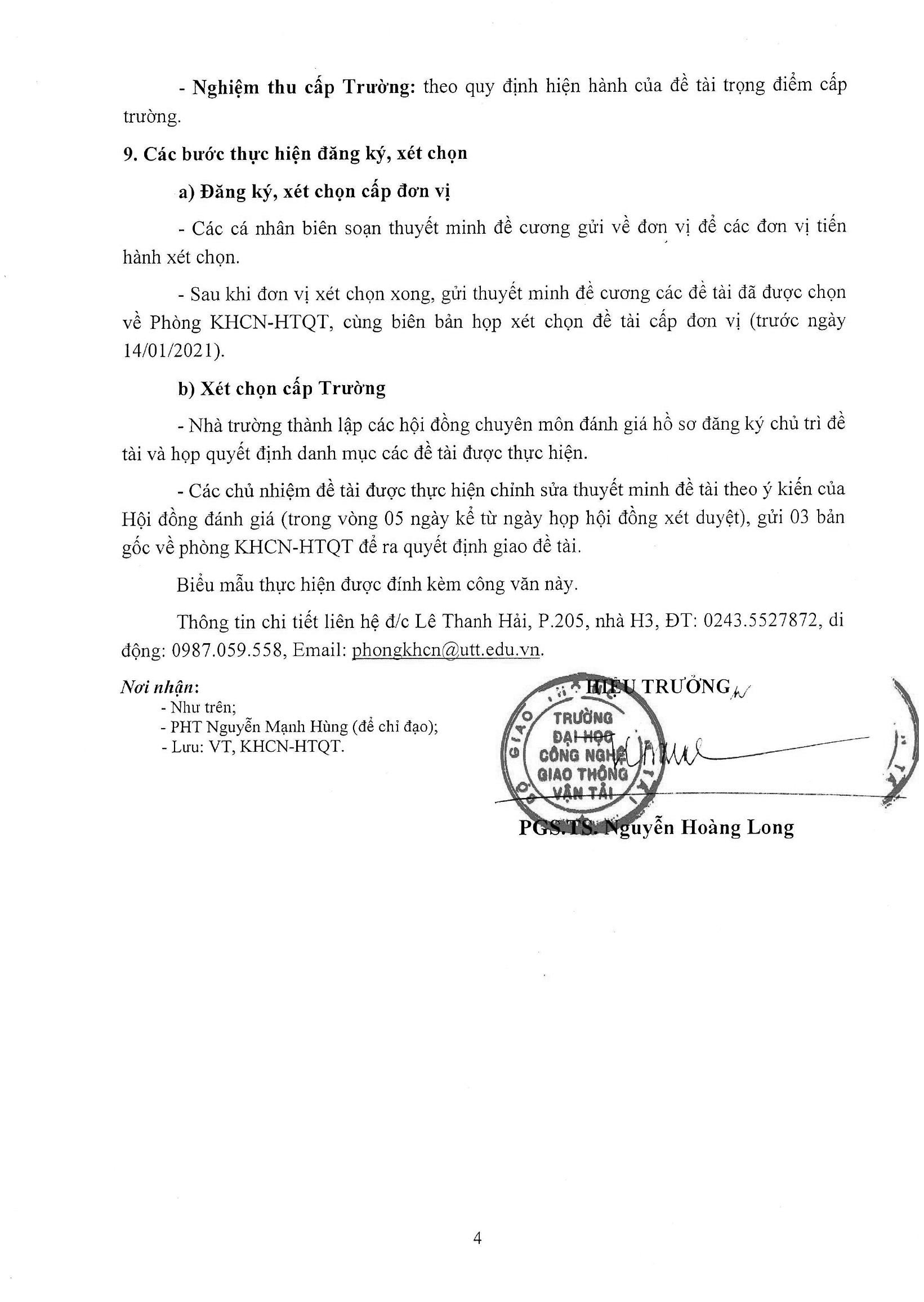 Quyết định giao nhiệm vụ thực hiện đề tài NCKH cấp trường của Giảng viên và Sinh viên năm...