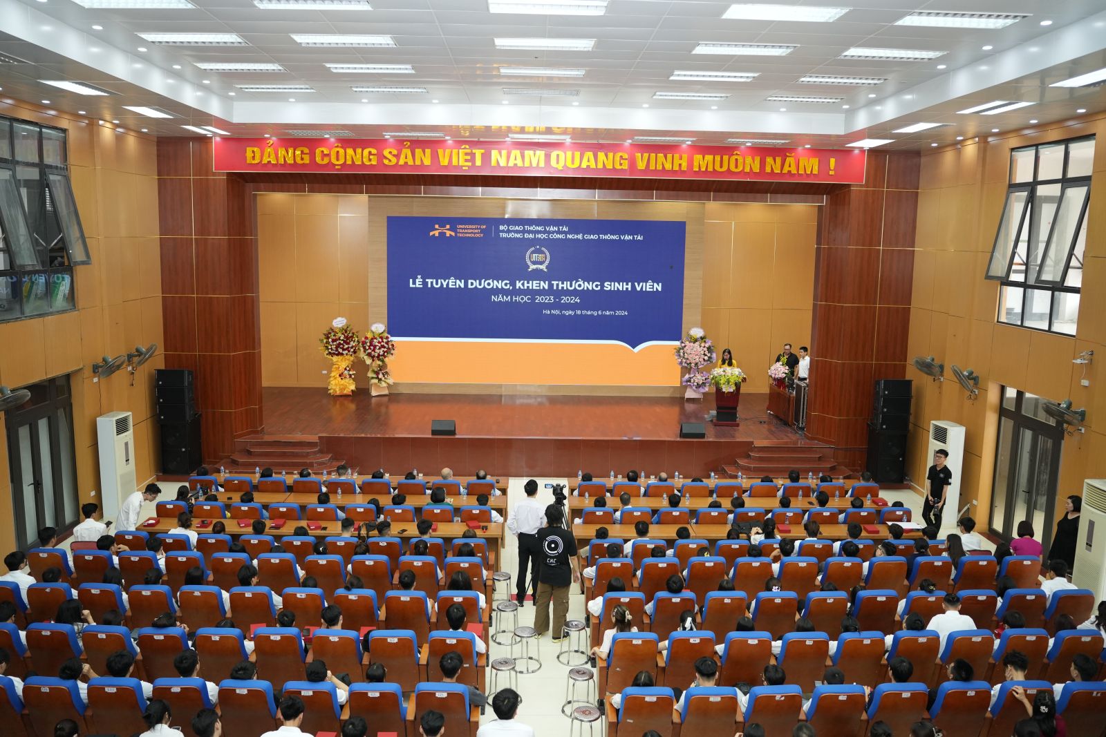 Nhằm động viên, khích lệ các sinh viên có thành tích học tập tốt trong năm học 2023-2024, từ đó lan tỏa tinh thần học tập, rèn luyện, nghiên cứu khoa học (NCKH), đổi mới sáng tạo (ĐMST) tới toàn thể sinh viên, sáng ngày 18/6, tại cơ sở đào tạo Hà Nội, Trường Đại học Công nghệ GTVT tổ chức Lễ tuyên dương, khen thưởng sinh viên năm học 2023-2024.
