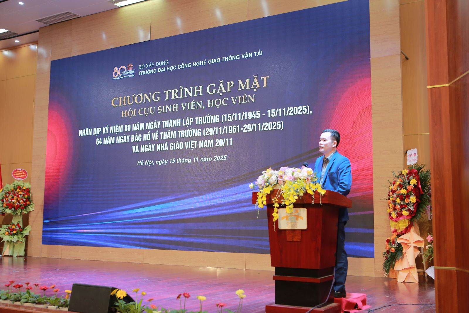 Ngày 15/11/2025, trong không khí ý nghĩa của chuỗi hoạt động kỷ niệm 80 năm ngày thành lập Trường (15/11/1945 - 15/11/2025), 64 năm ngày Bác Hồ về thăm Trường (29/11/1961 - 29/11/2025) và chào mừng Ngày Nhà giáo Việt Nam 20/11, Trường Đại học Công nghệ GTVT (UTT) đã long trọng tổ chức chương trình gặp mặt và kiện toàn, ra mắt Ban liên lạc Cựu sinh viên.