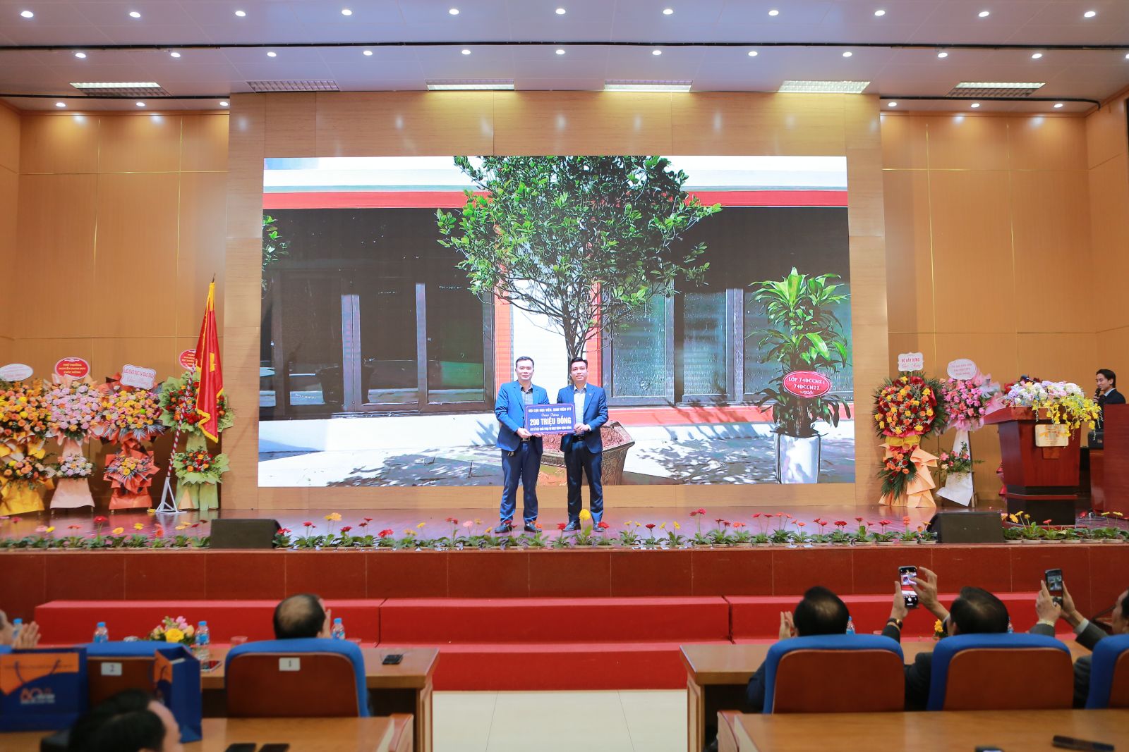 Đại diện Ban liên lạc Cựu sinh viên trao tặng Nhà trường món quà tổng trị giá 200 triệu đồng