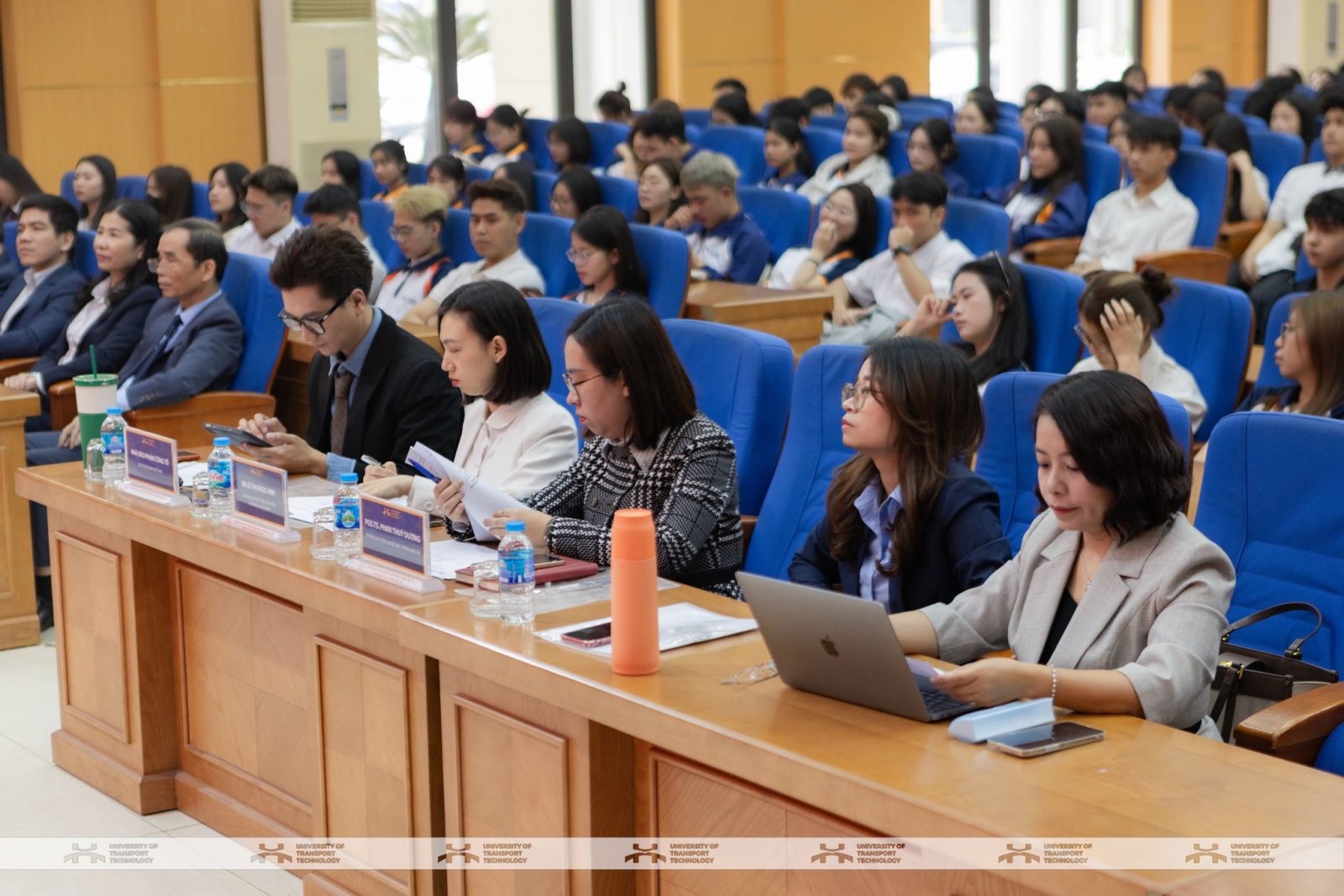 Về phía Nhà trường có TS. Nguyễn Văn Lâm - Phó Hiệu trưởng; TS. Ngô Quốc Trinh - Trưởng Phòng Đào tạo; TS. Hoàng Thị Hồng Lê - Trưởng Khoa Kinh tế vận tải, đại diện lãnh đạo các đơn vị cùng các giảng viên, chuyên gia, nhà khoa học.