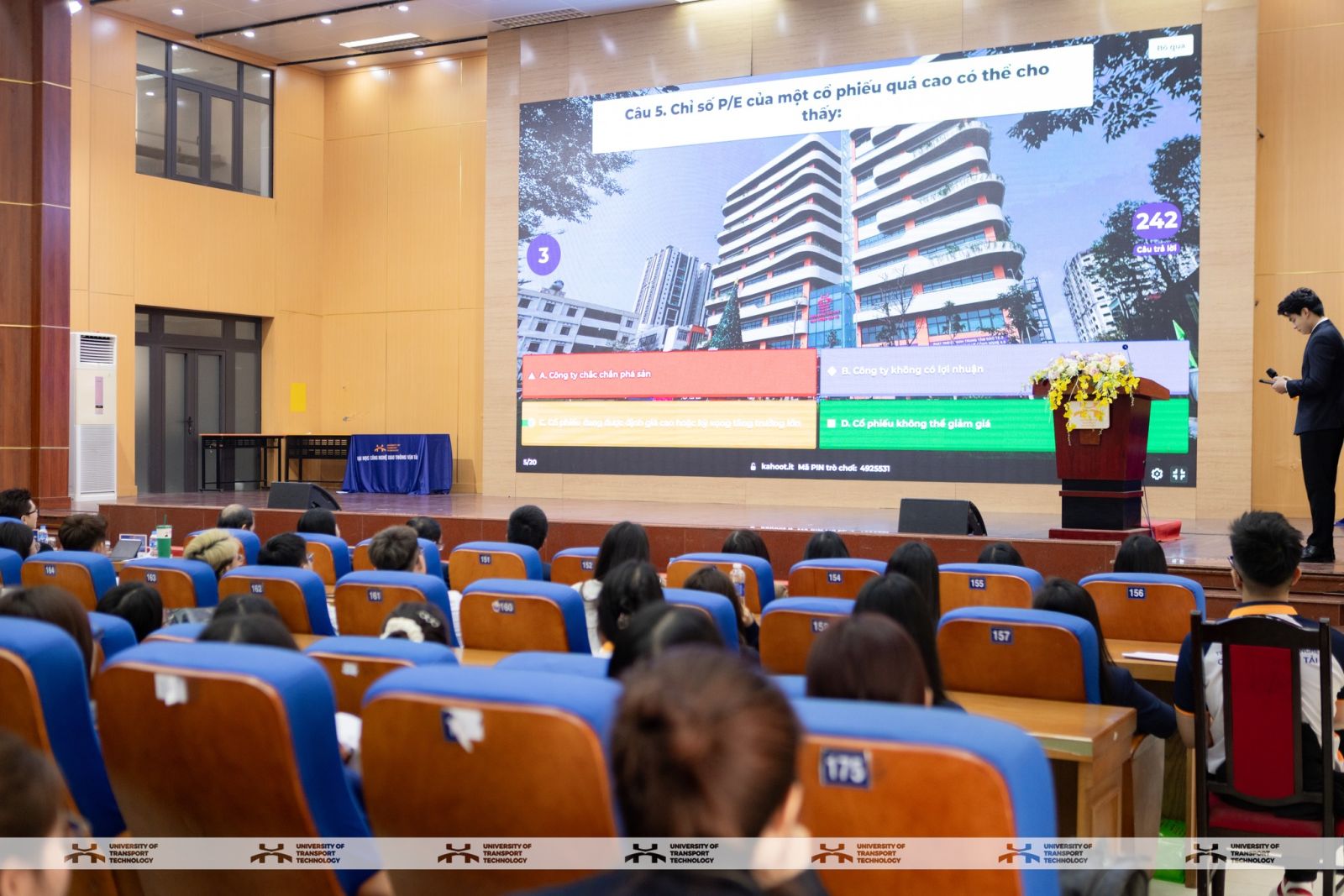 Bên cạnh phần thi của các thí sinh, chương trình còn diễn ra nhiều hoạt động giao lưu sôi nổi giữa sinh viên và các vị khách mời. Không khí hội trường trở nên hào hứng khi sinh viên tích cực đặt câu hỏi xoay quanh các chủ đề tài chính cá nhân, xu hướng đầu tư trong thời đại số, cũng như những kỹ năng cần thiết để người trẻ quản lý đồng tiền hiệu quả.